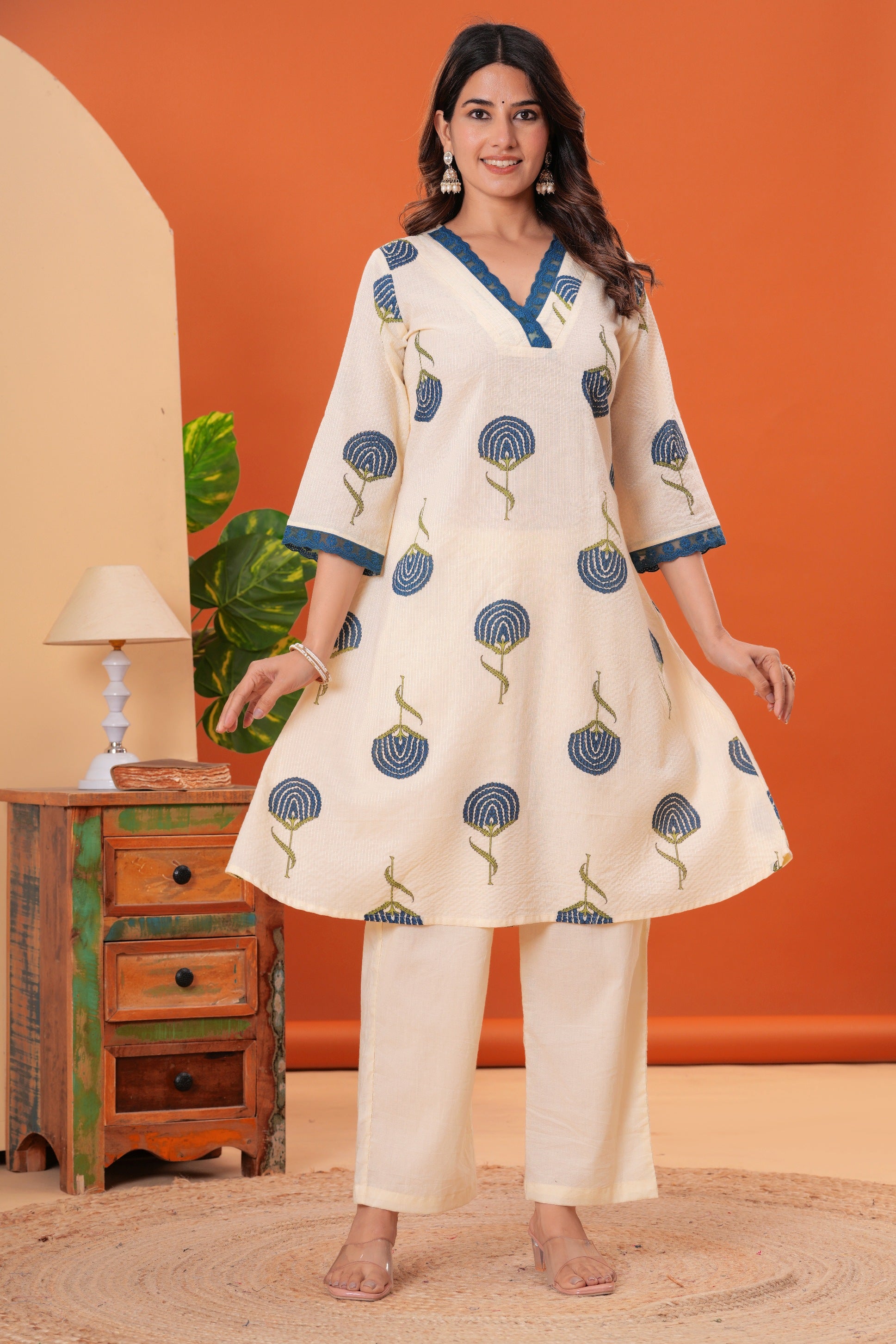 Printed V Neck Pure Cotton Top With Trousers Co-Ords